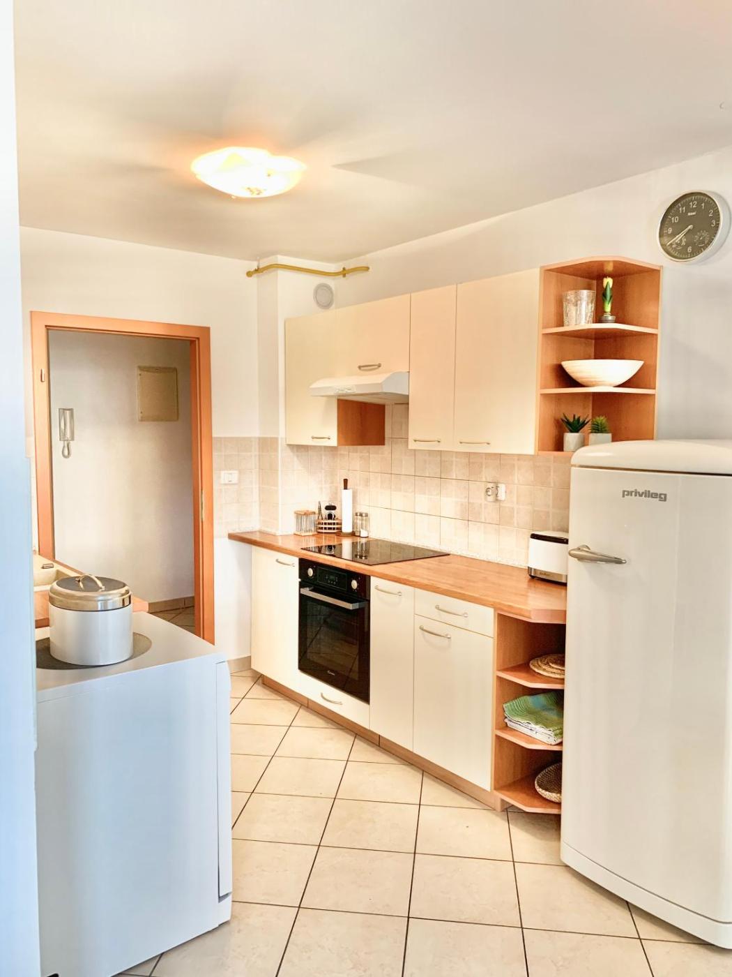 Two-Bedroom Apartment. This spacious apartment comes with 1 living room, 2 separate bedrooms and 1 bathroom with a shower and free toiletries. Guests can make meals in the kitchen that features a stovetop, a refrigerator, a dishwasher and kitchenware. The air-conditioned apartment features a flat-screen TV, a washing machine, a private entrance, a tea and coffee maker as well as garden views. The unit has 3 beds.